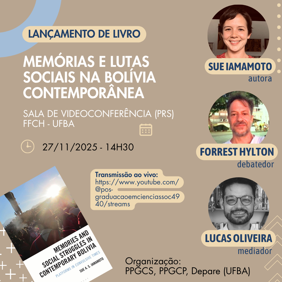 O Programa de Pós-Graduação em Ciências Sociais (PPGCS) tem o prazer de promover o lançamento do livro "Memories and Social Struggles in Contemporary Bolivia: Platforms in Convulsive Times" (Bloomsbury, 2025), de Sue Iamamoto, professora permanente do PPGCS, cujos trabalhos exploram as intersecções entre memória, mobilização social e política na América Latina contemporânea.